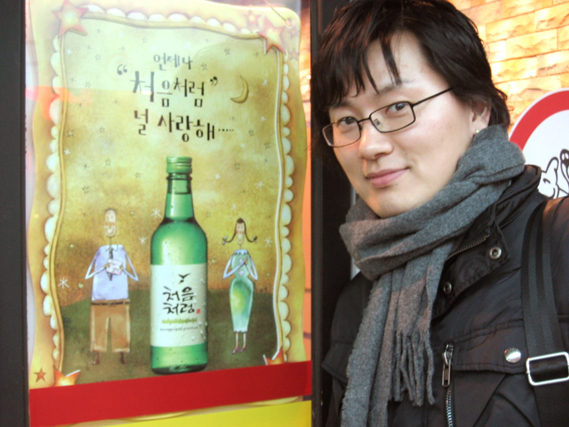 술집입구에 붙어있던 "처음처럼"광고 일러스트를 배경으로 촌스럽게 한장....^ ^;;;;;