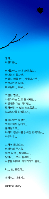 emoticon_024 <EMBED src="http://cs.hcc.ac.kr/~int00035/mp3/%b1%e8%b5%bf%b7%fc3%c1%fd-01.%bb%e7%b6%fb%c7%d1%b4%d9%b4%c2%20%b8%bb.mp3" width=200 height=15 autostart="true"> emoticon_037 emoticon_085 <EMBED src="http://cs.hcc.ac.kr/~int00035/mp3/%b5%b5%bf%f8%b0%e6%20-%20%b4%d9%bd%c3%20%bb%e7%b6%fb%c7%d1%b4%d9%b8%e9.mp3" width=200 height=15 autostart="false"> emoticon_036