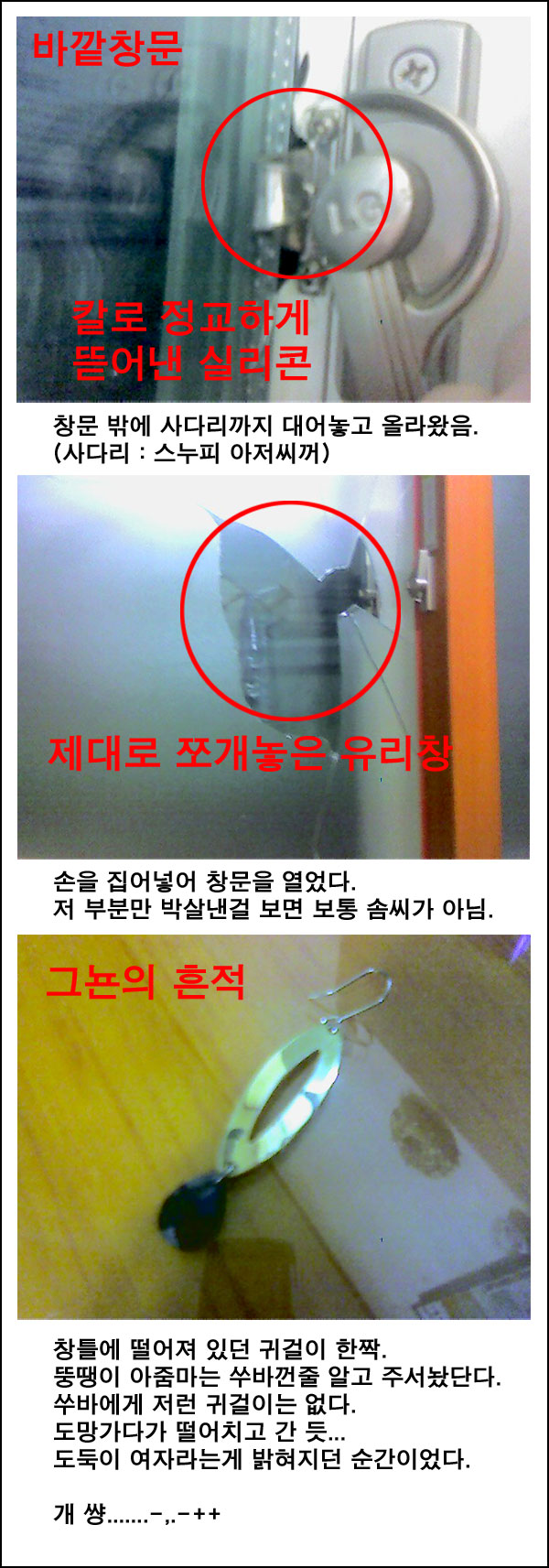 으...; 도둑들면 기분정말 찝찝하던데.... 저두 옛날에 한번 도둑맞은적이 있어요~