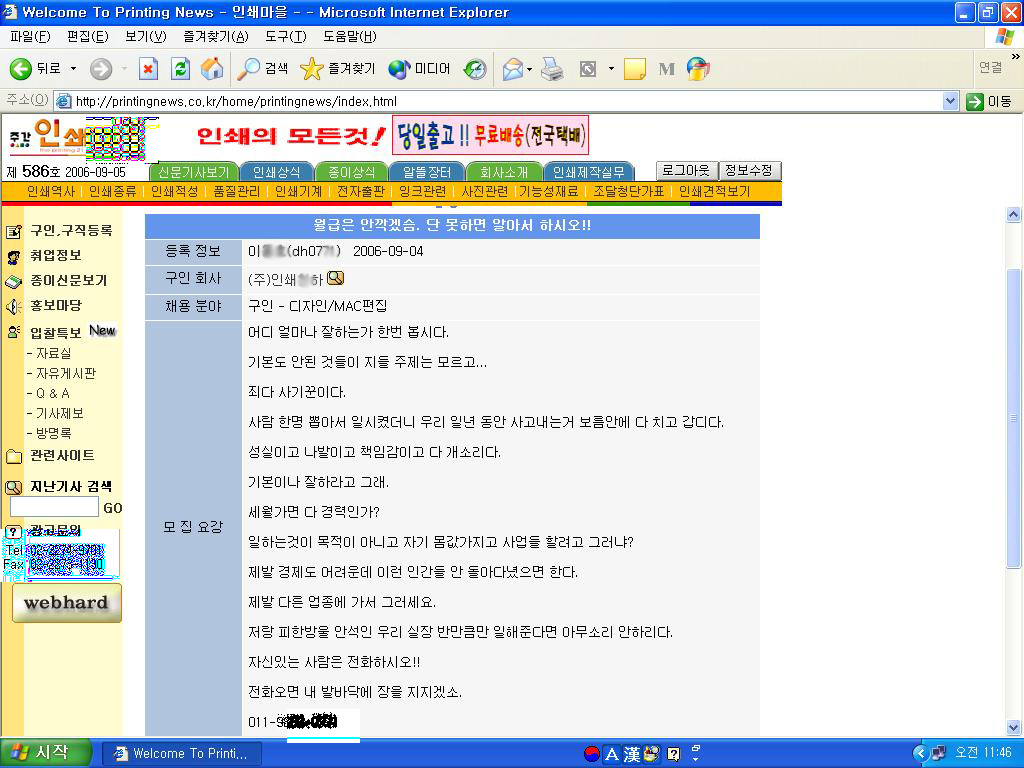 인쇄 구인 사이트 인쇄마*에 들어가 봤더니