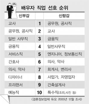 남자가 배우자에 바라는 3대 기호 직업.