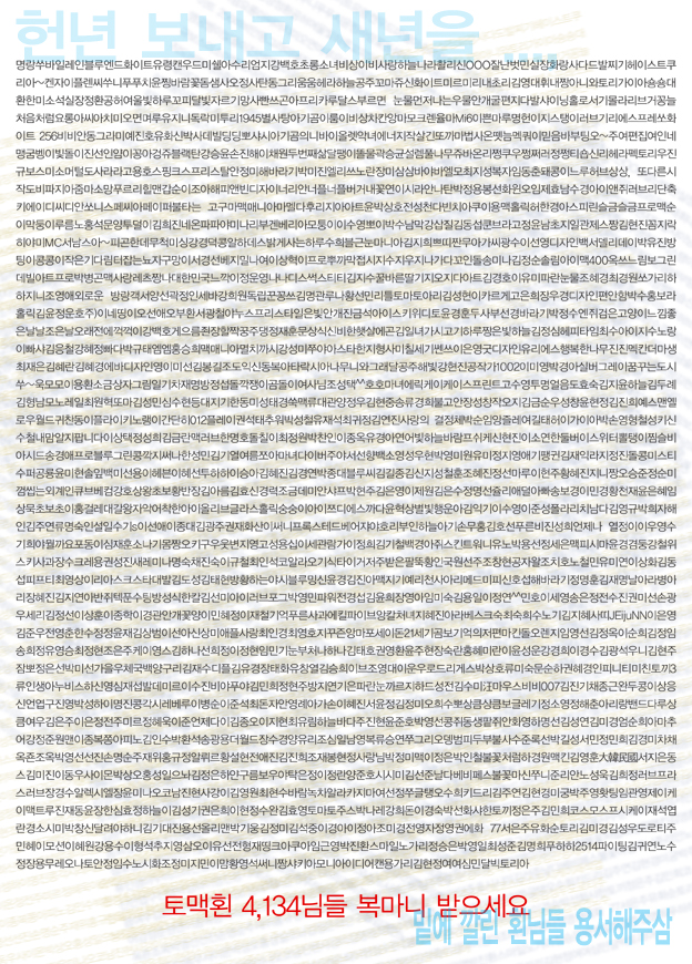형님두 새해 복많이 받으세요 대단하시다 4,134분의 닉네임을 다 적으시다니
