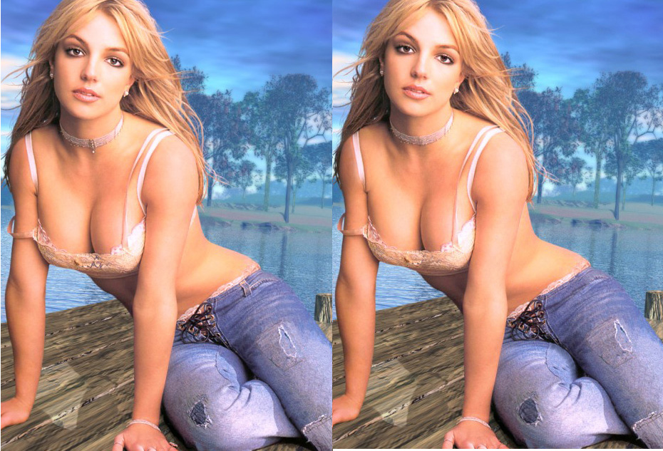 * 오른쪽 그림을 약간 올려서 이어붙인 관계로, 브리트니 머리가 조금 짤렸음. 따라서 오른쪽 사진에서 브리트니 이마 위 최상단, 머리카락 사이의 음영이 조금 잘려 나간 것은 무시하시길.