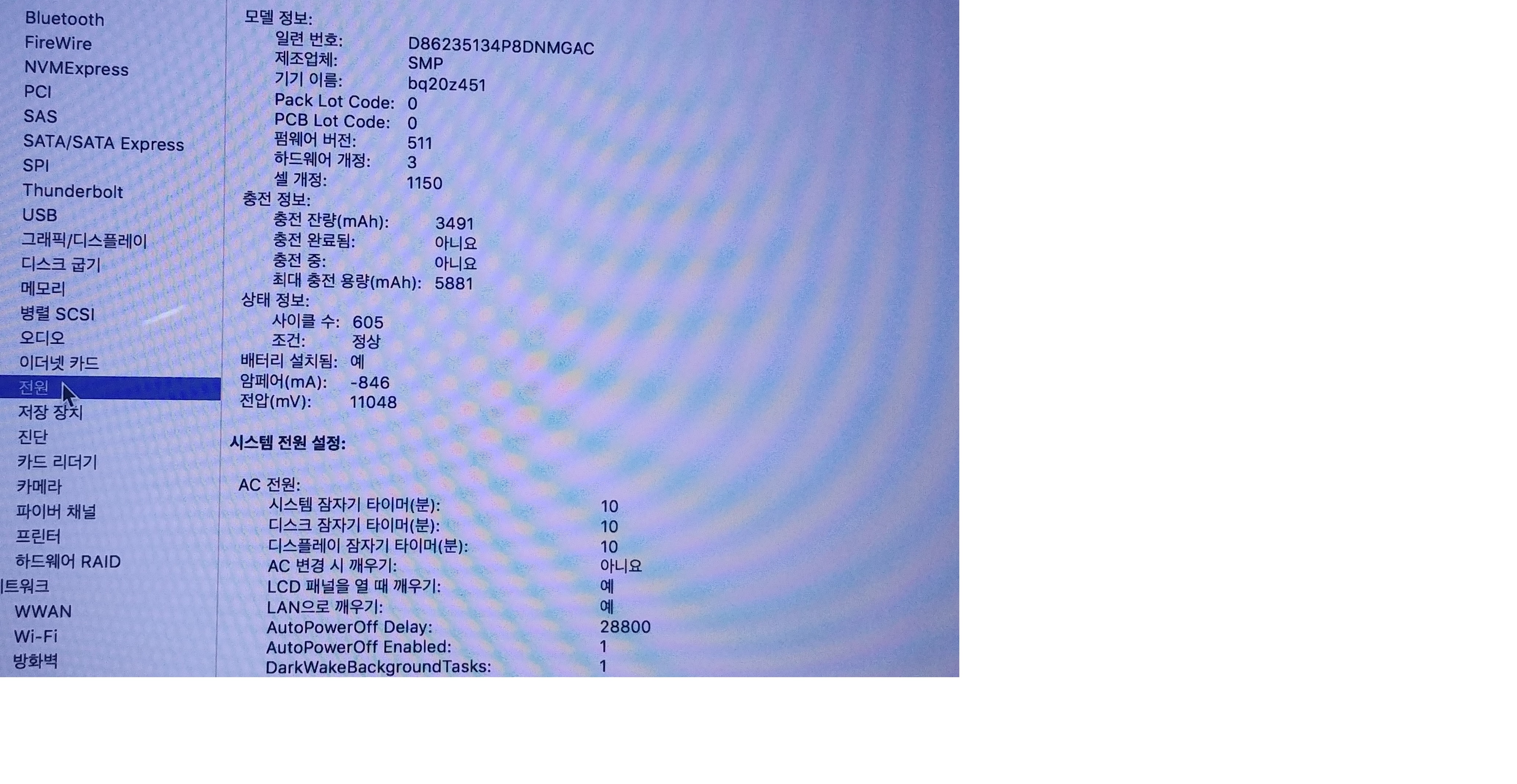 사이클 수 605  최대충전용량 5881