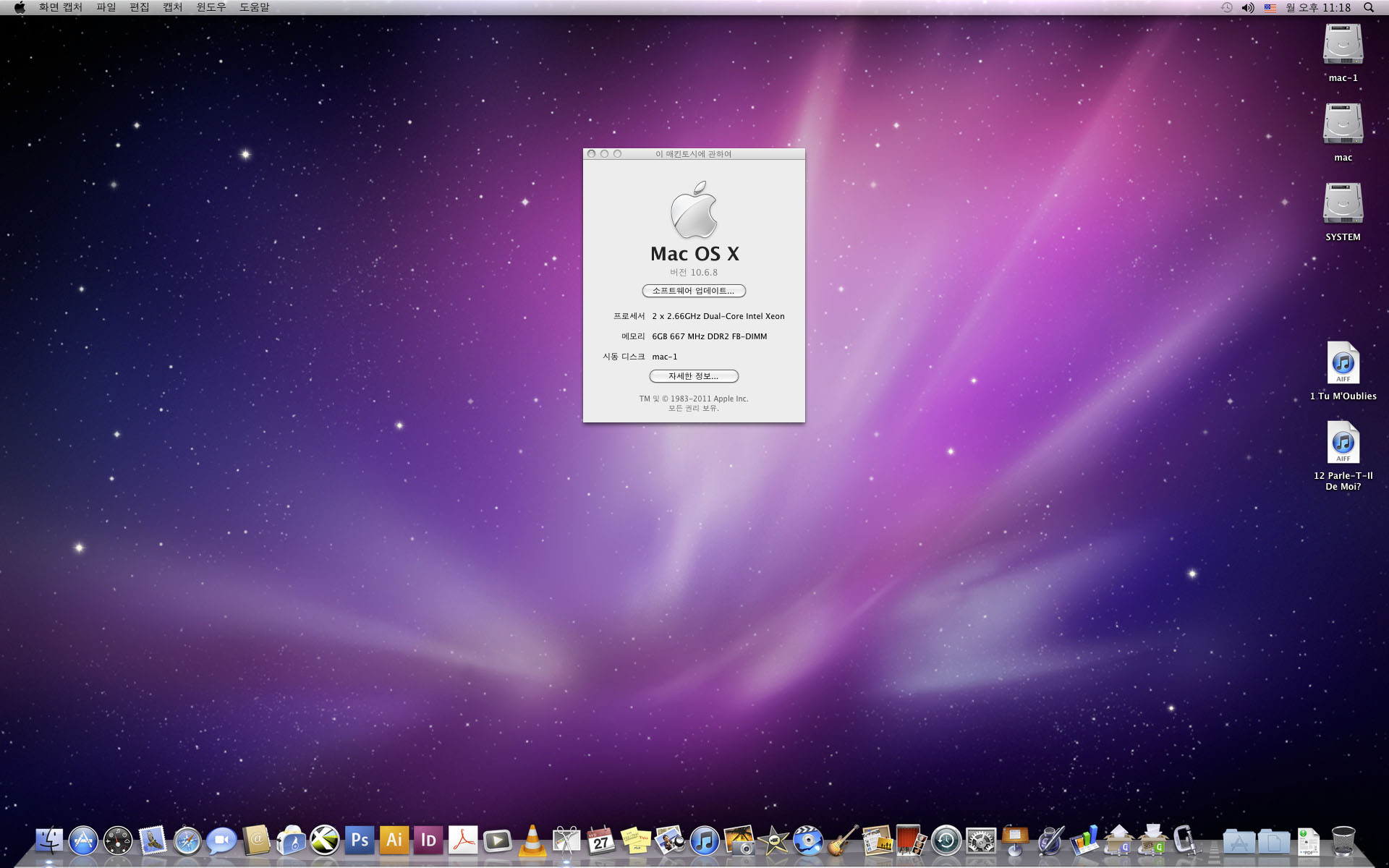 1. 맥프로 인텔제온 2.66Ghz xeon 2코어 x 2 (쿼드코어)