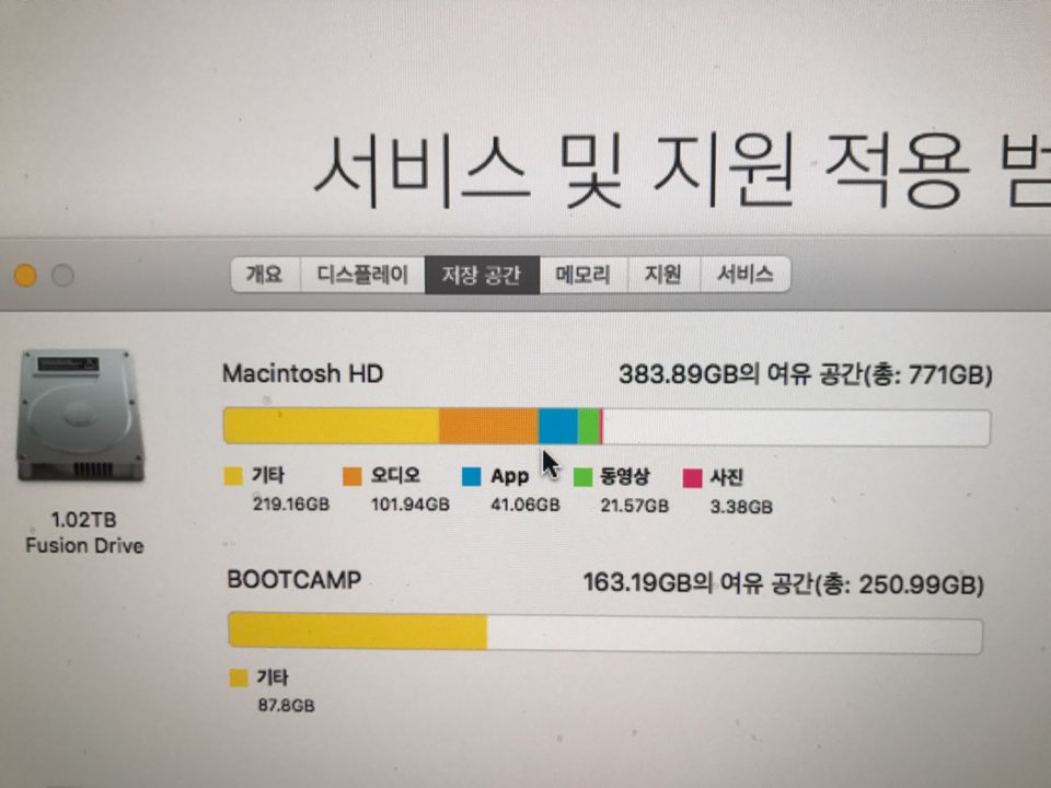저장공간 : 1.02TB Fusion Drive