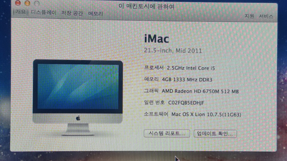 2011년 MID 21.5인치 램 4 하드 500GB 모델이구요