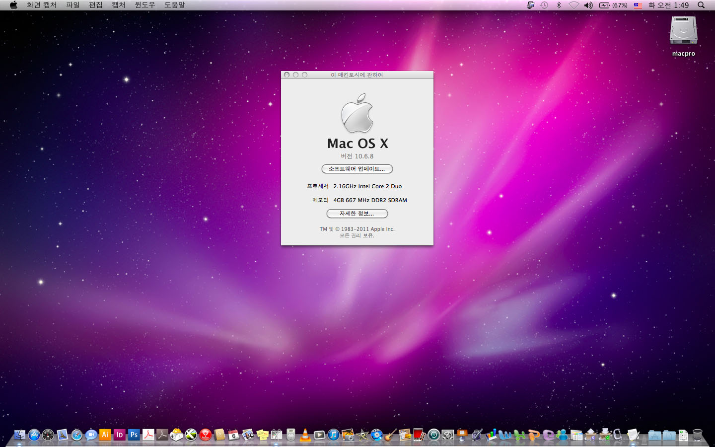 A급 맥북프로 15인치- 맥 디자인프로그램들과 윈도우7 설치됨
