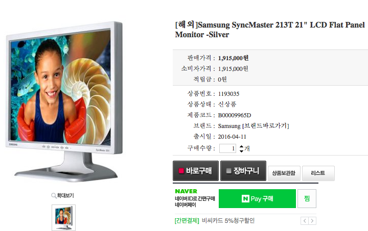 올린 광고사진과 같은 213T 모델(해외 판매자는 190만원에 팔고 저는 3만원에 팝니다)