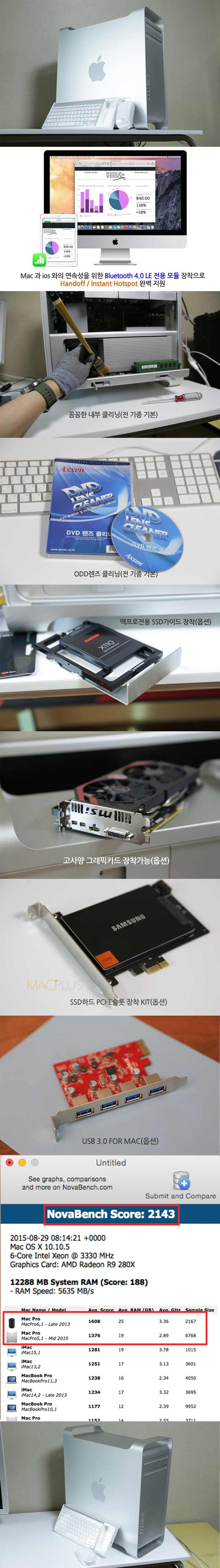 -HDD : SSD 인텔 120GB + 맥프로전용 PCI-E 장착킷(속도 150MB/s 이상 상승) + 500GB(부트캠프 쉐어)