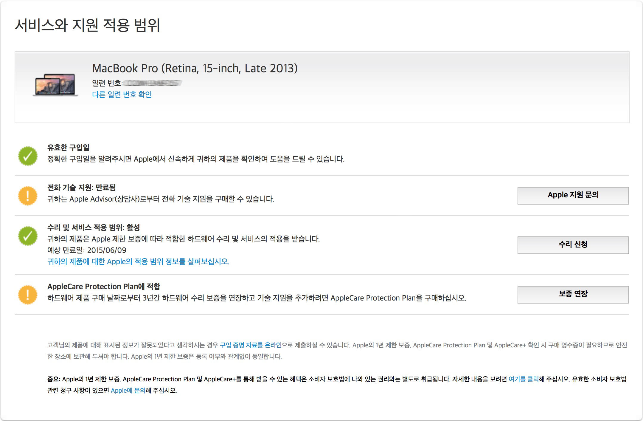사양은 맥북프로 15인치 2013 late 고급형 사양이구요.