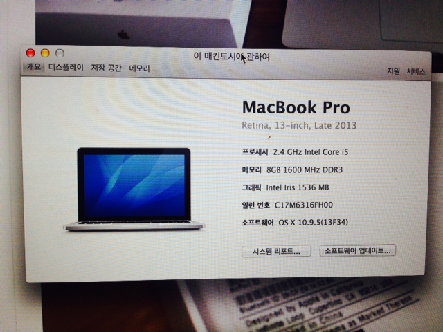 2013년 후기모델 맥북프로 13인치 레티나 팝니다.