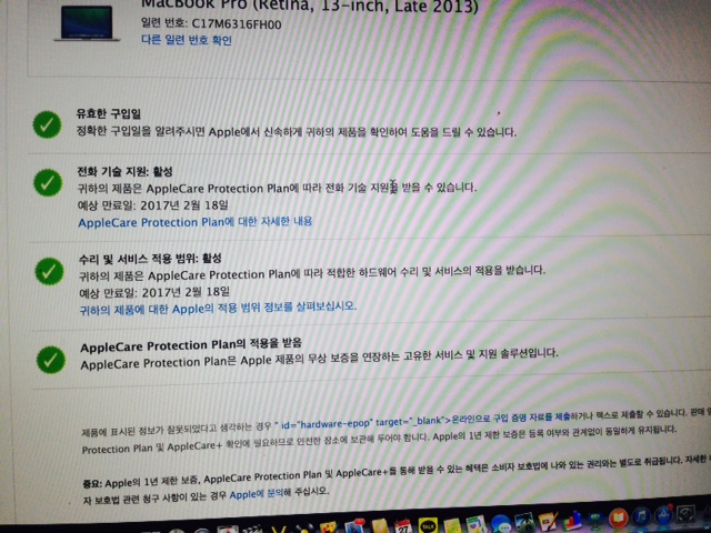 애플케어 1년을 더 추가해서 2017년 2월 까지로 보증기간은 아주 넉넉합니다.