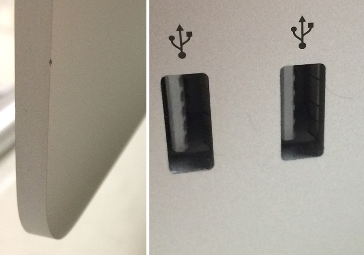 본체 옆면에 조그맣게 찍힌 부분과 USB 꽂는곳에 기스있습니다.(사진첨부했습니다.)