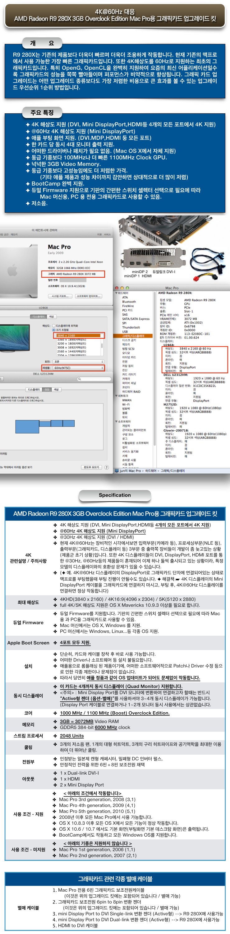1. 물품명 : 4K@60Hz 지원 AMD Radeon R9 280X-3GB Overclock Edition Mac Pro 맥프로 용 그래픽카드 업그레이드 킷 (새제품) 판매