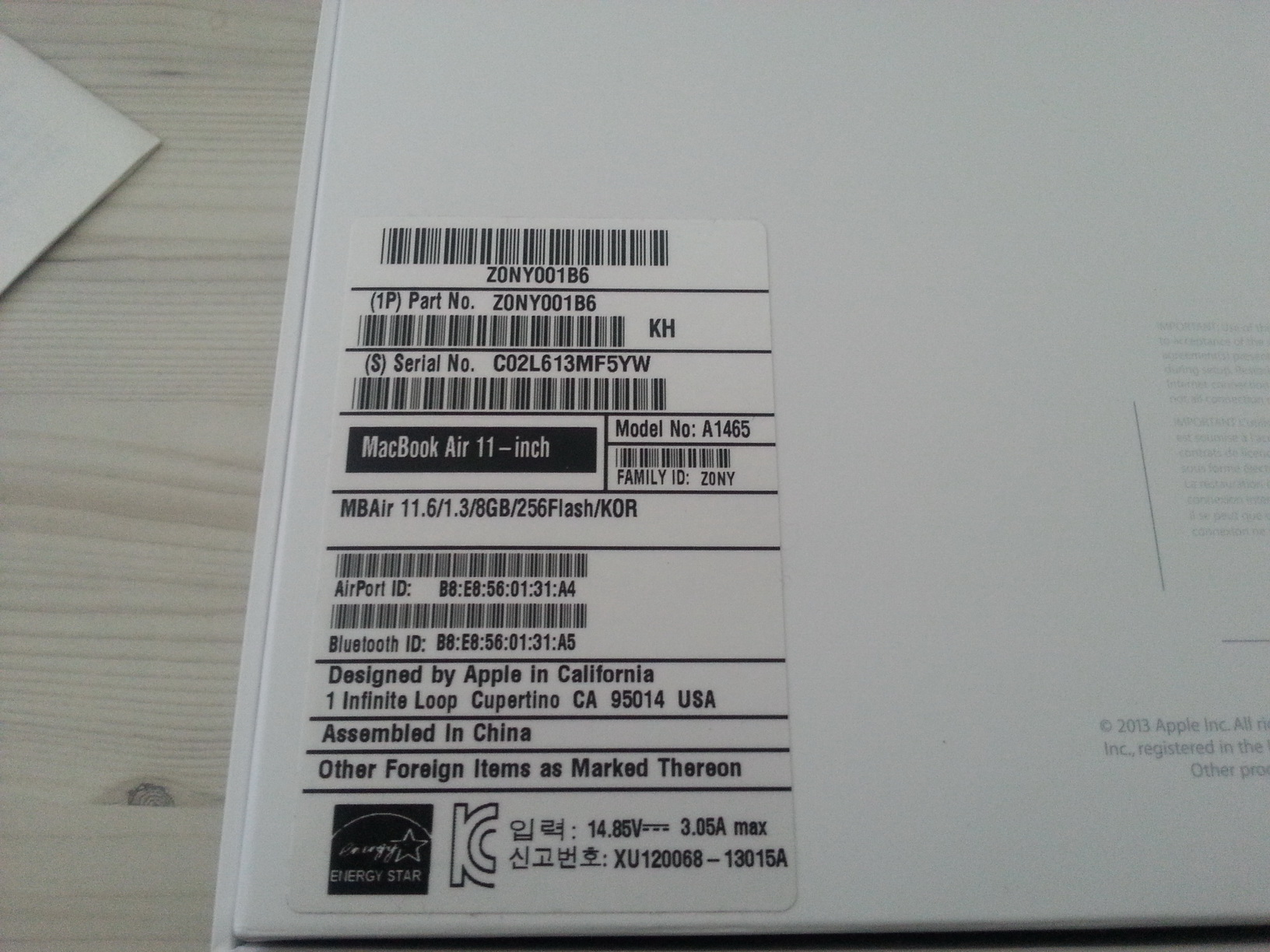 2013년 8월에 구입한 맥북에어 11인치입니다.