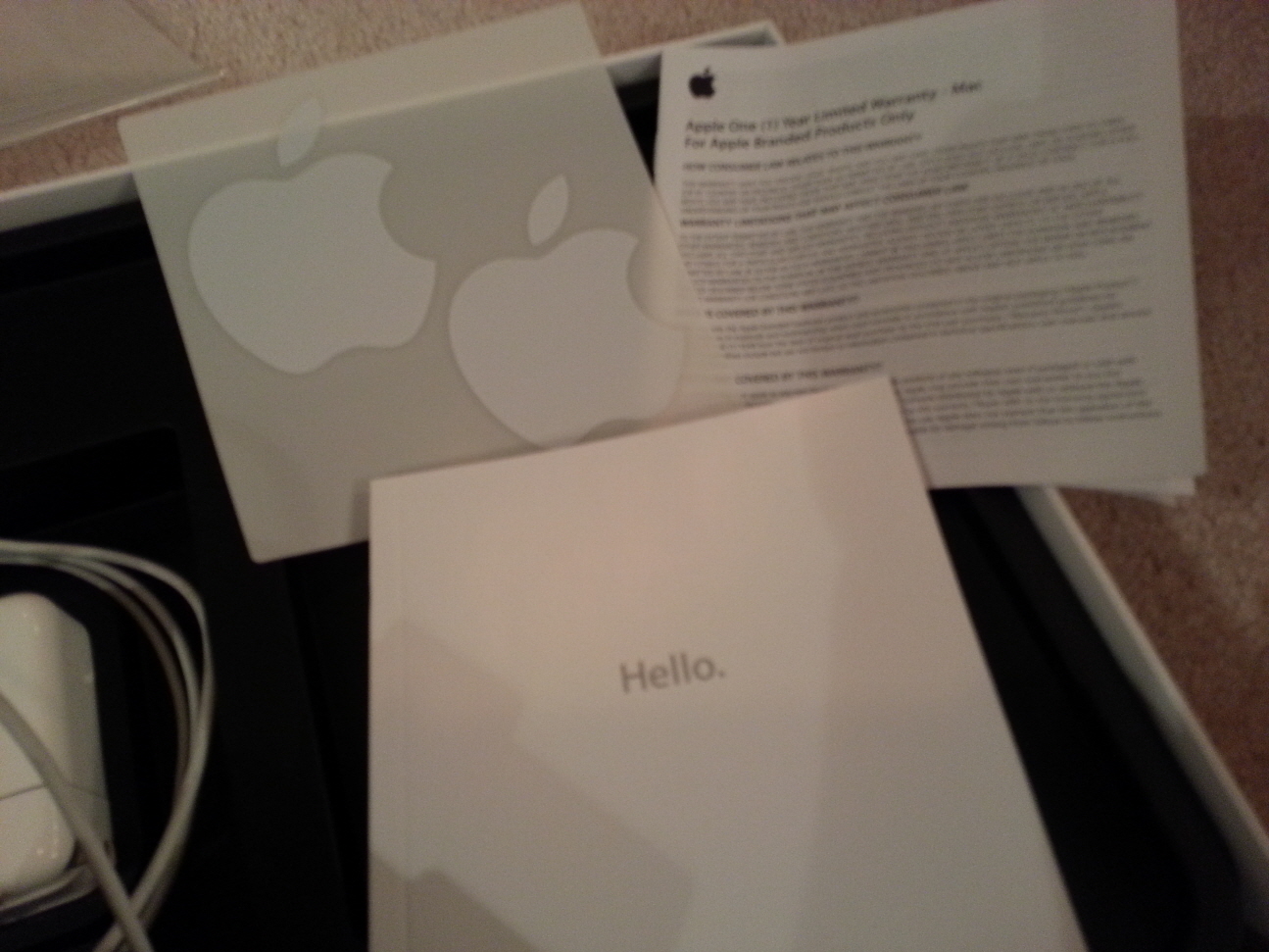 상태는 A+급 자부합니다. 구매하자마자 Zagg사 Full shield 보호필름 부착하였구요. 트랙패드에는 감도때문에 붙이지 않았었습니다만 별다른 스크래치 없습니다. 구매후 간단한 문서작성하거나 영화보는 데에만 사용하였고, 거의 항상 방안에서 충전기꼽고 사용해서 사이클도 높지 않습니다. Incase사 애플매장에서 파는 사진상에 보이는 검정 소프트 케이스 같이 드리구요. Lan선 연결하는 USB Cable도 드립니다. 애플스토어에서 파는 정품입니다.