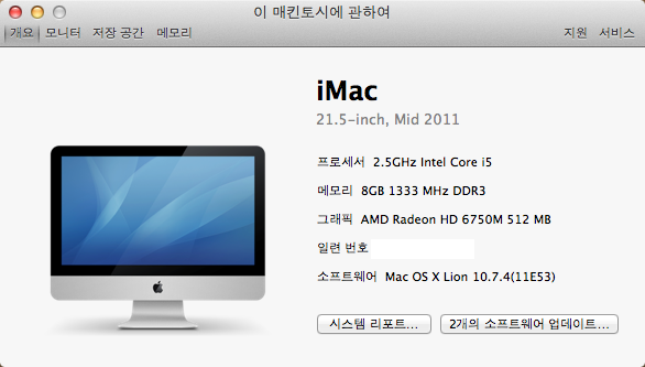 2012 3월달쯤 구입한 아이맥 21.5인치 입니다