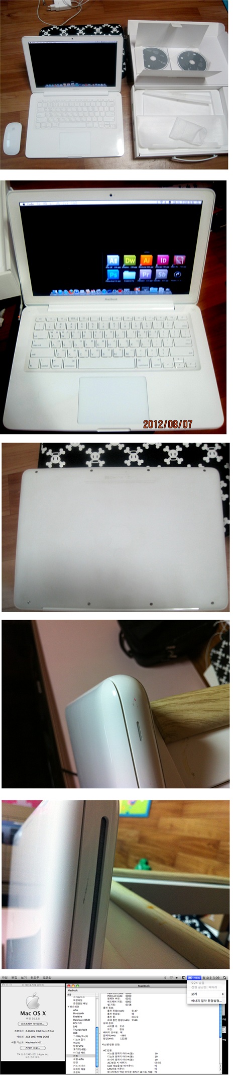 맥북 흰둥이(MC207KH/A)+매직마우스+VGA어댑터 팝니다