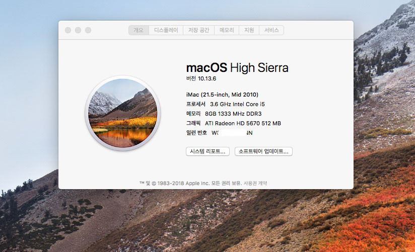 맥os 10.13 하이시에라 설치됨
