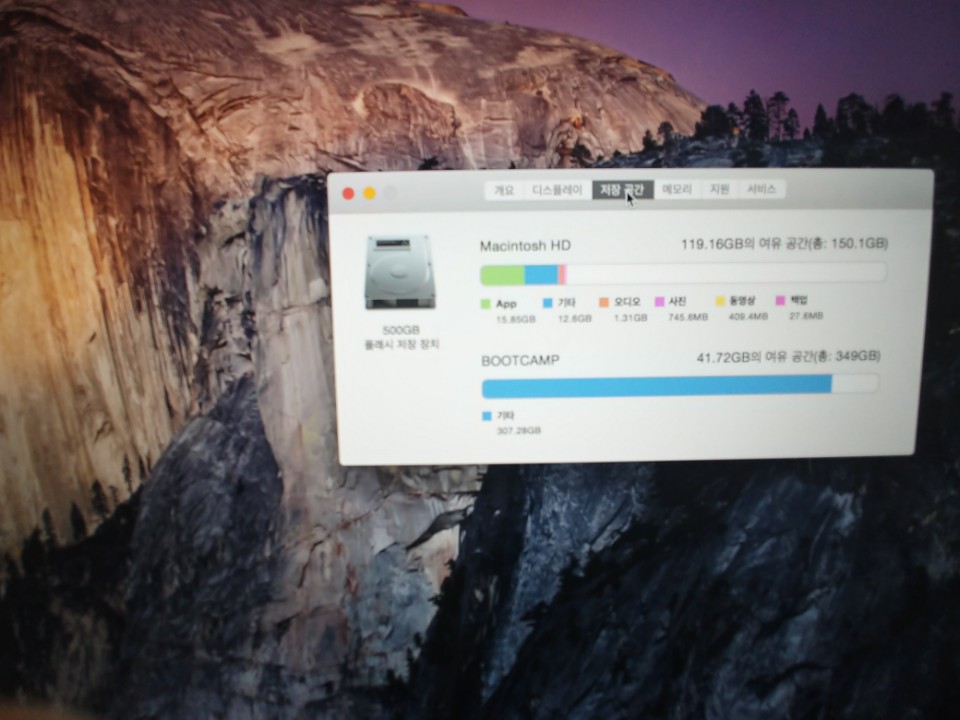 부트캠프 윈도우7깔려있는 상테고, 실 사용으로 따지면 1년도 사용 안했네요. 맥 os가 불편하니...잘....