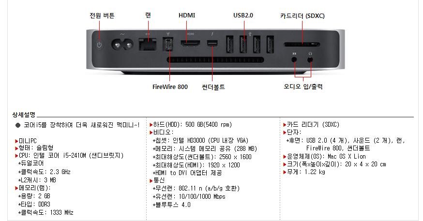 맥미니2011 mid i5 185000원