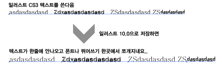 일러스트CS3를 10.0으로 버젼 낮춰서 저장할때 텍스트가 한줄에 있지않고