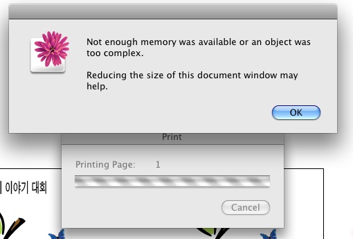 프린트 버튼을 누르면 "not enough memory was available or an object was too complex.