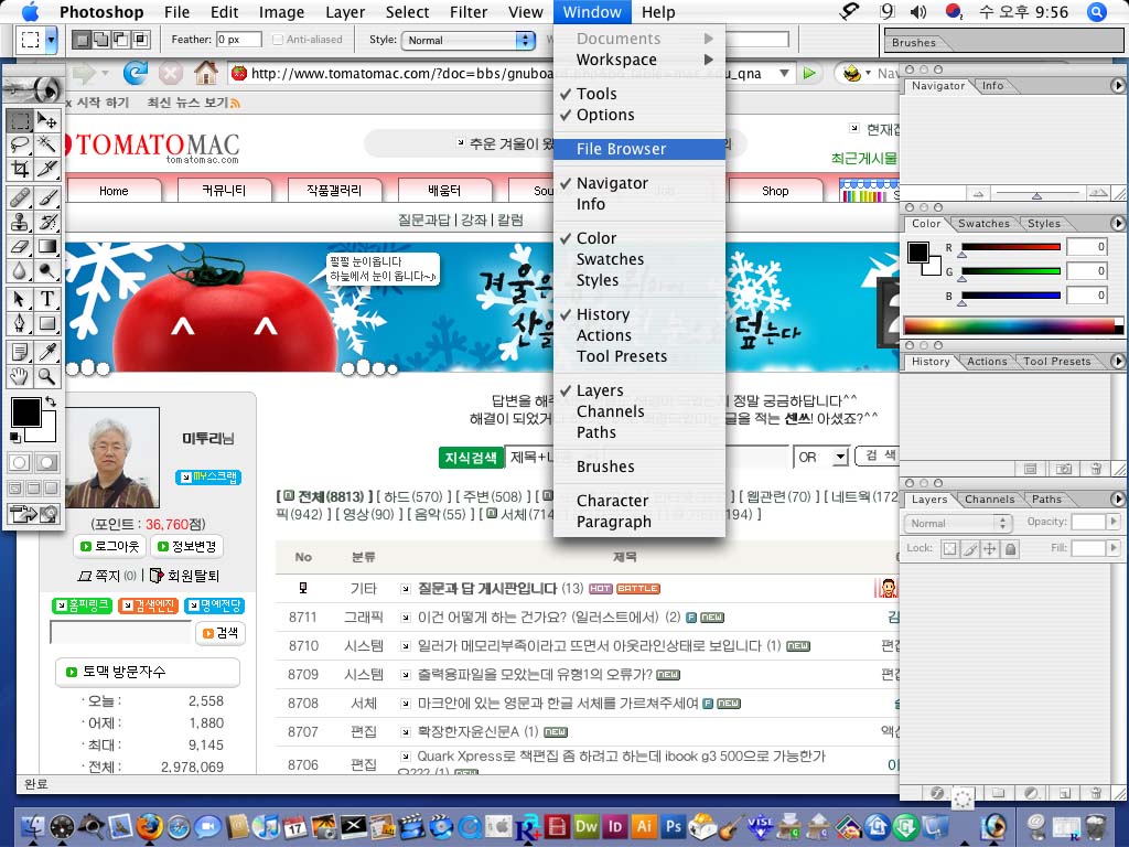 포토샵7.0에서 있든 file Browser 이기능이 cs3에서는 어디로 갔는지 아시는분 도움의 손길을 기다립니다
