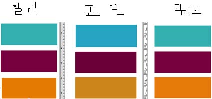 일러, 포토, 쿽에서의 동일한 색상인데 포토 같은 경우 색이 다르네요. 비트맵형식이라 다른가요? 아니면 다른 이유인지...  색상을 같게 맞출수는 없는 것이지 궁금합니다.