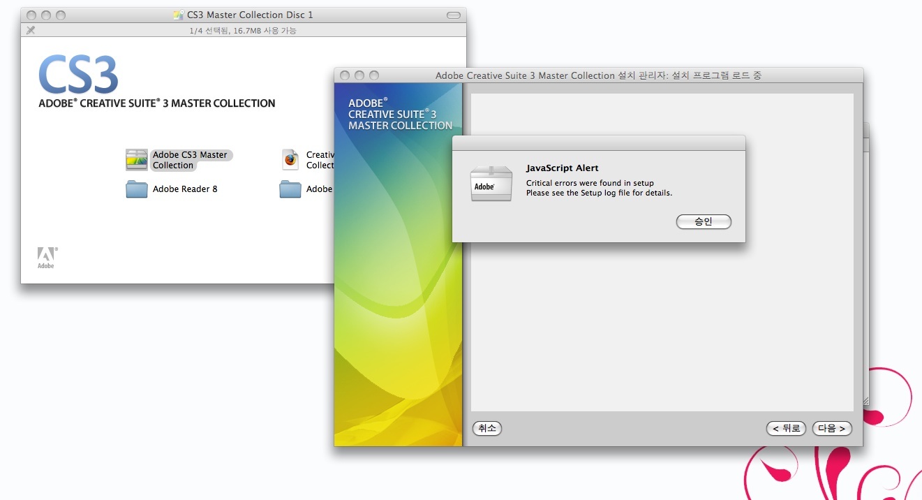 CS3 마스터 콜렉션 설치시 문제