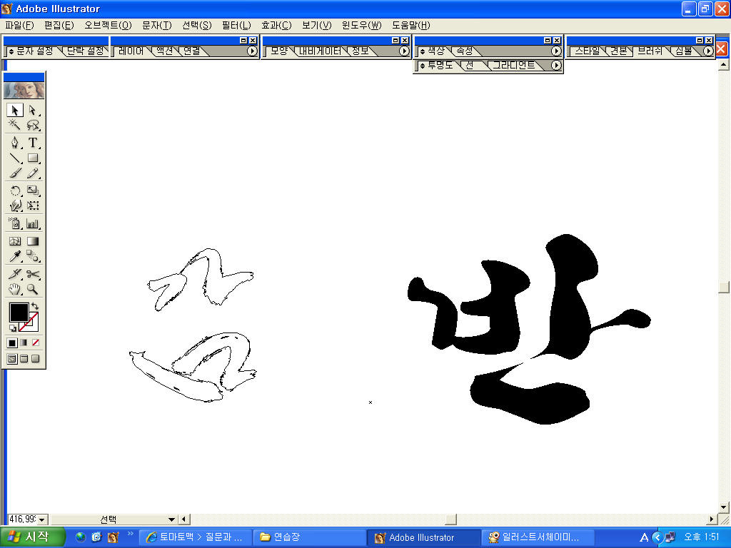 그럼 여기서 제가 궁금한점은 "반"이라는 글자는 일러스트에서 직접친것인데