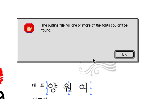 일러에서 서체 아웃라인이 안 따집니다.