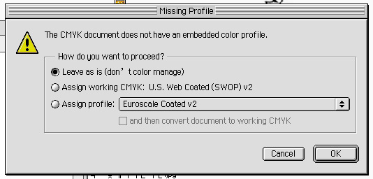 이미지가 밑에 칼라프로필을 쓰고있다구 하네요... 위에체크된것은 프로필을 안바구겠다는것이구요..맨 밑에있는것은 그 프로필을 쓴다구 하는거예요... 상위버전에서 저장한 파일을 열어쓸때두 뜹니다.... 저 같은경우는 색보정을 마니하는데요...걍 무시해두 되요....