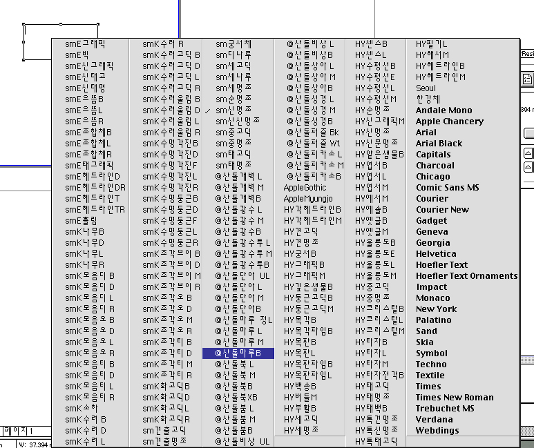 스샷처럼 서체목록을 띄우려면 어떻게 설정 해야 하죠?