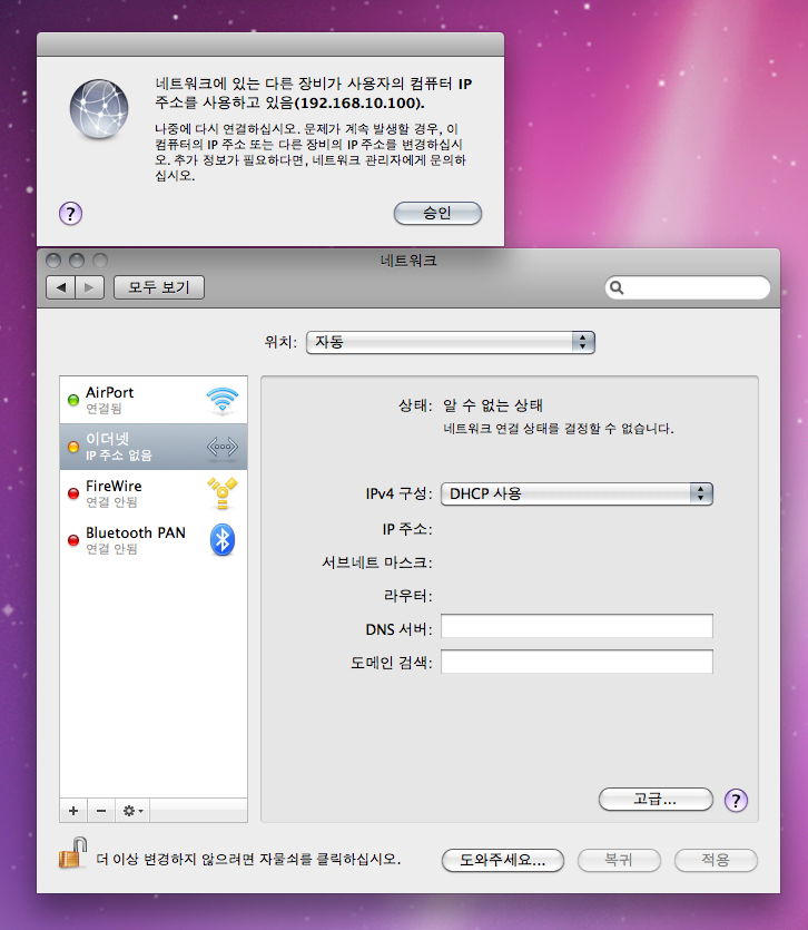 에어포트로 인터넷은 되는데,. 프린터등 기타 네트워크 사용을 못해서 ㅠ.ㅠ