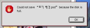 스크래치 디스크던가?(토토샵 환경설정에서) 맞던가? 여유가 많은 하드를 선택한 후에 다시 해바바여 =_=