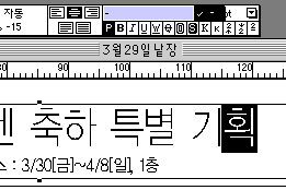 그 옆도 같은 서체인가요? 그렇다면 그건 텍스트 에러 일수 있어요. 님컴에 바이러스가 무지 많아서 그럴경우도 잇습니다.텍스트를 지우고서 다시한번치세요 그래도 안되면 시스템정리하시고 쿽다시까세요 귀찮으시면 자형폴더만 원래잇는거 버리고서 cd에서 새로 카피하세요