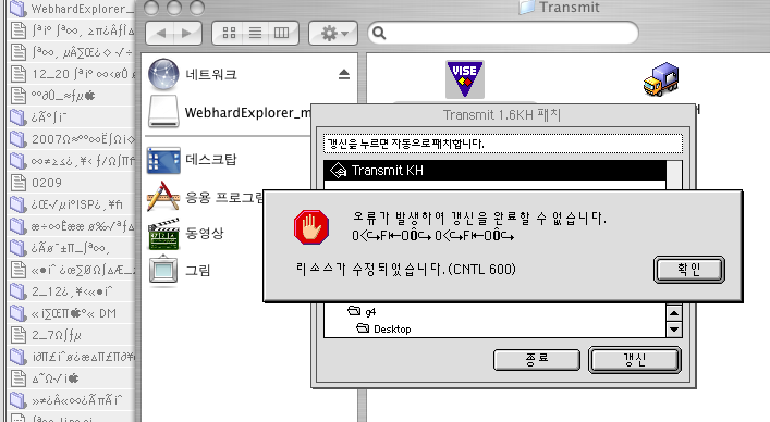 그러시다면 다시 다운로드를 받아 압축을 풀어 패치 없이 Transmit KH를 더블 클릭을 바로 하여 사용을 하시되, 그 전에 한글 시스템 > Preferences 폴더에서 Transmit Preferences를 삭제를 한 후에 실행을 해보시기 바랍니다.