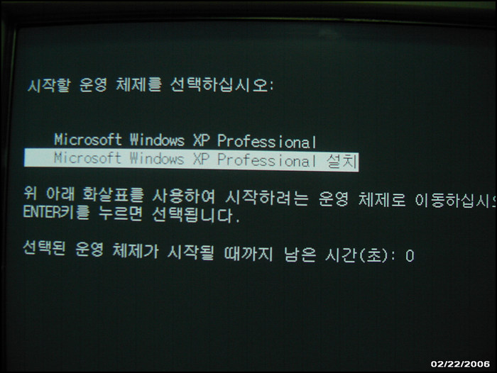 화살표를 선택해서 위에 윈도우 프로페셔날을 선택하고 엔터를 치면 실행은
