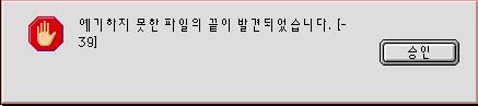 예기하지 못한 파일의 끝이 발견되었습니다. [-39]