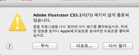 일러스트 CS5에서 한글텍스트 입력시 '예기치 않게 종료'됩니다.