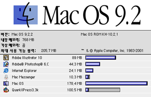 일반적으로 맥 OS는 60~100MB 정도가 될 것이며, 이를 기준으로 하면 대략 550~600MB 정도를 각 응용 프로그램(동시에 사용하는 프로그램들)으로 배분을 해주시면 될 것입니다.