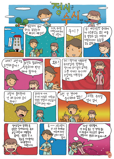 정시와 수시에 관한 안내를 위해 제작된 카툰.