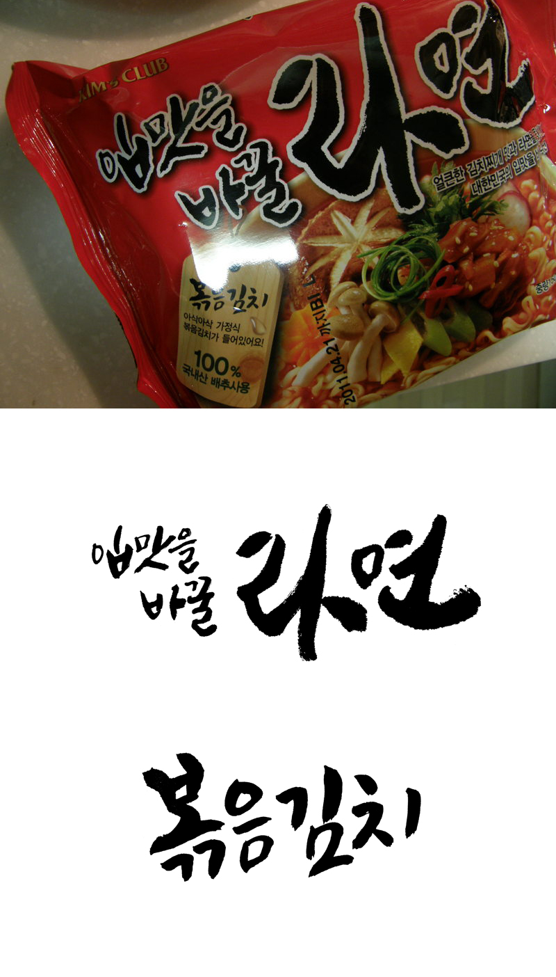 입맛을바꿀라면_라면패키지 캘리그라피