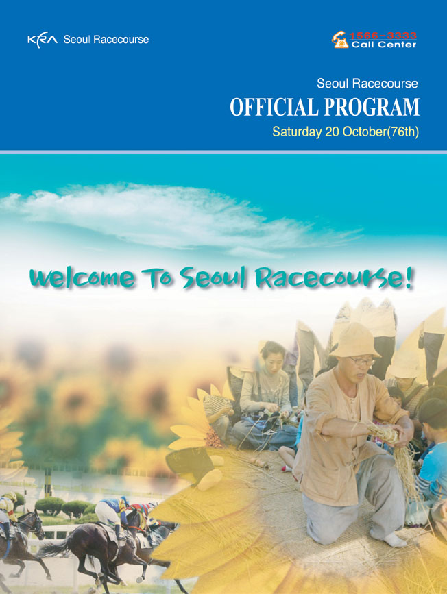 일단은 welcome To ~~~요 서체가 별루구요 하단 사진합성부분에서 경마하는사진이 꽃잎에 눌려보여요..