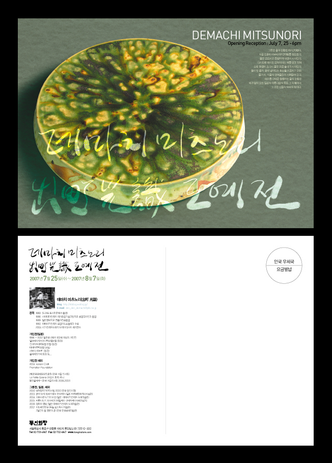 일본의 데마치 미츠노리라는 유명한 도예가의 전시회 관련 엽서입니당.