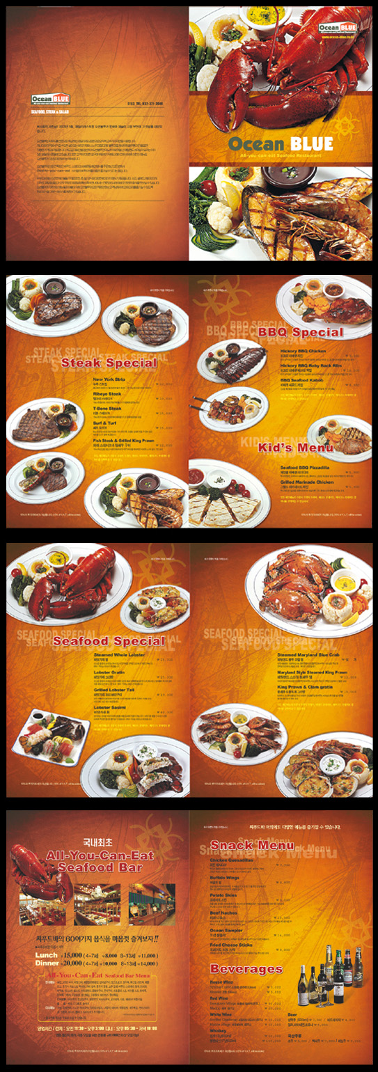 메뉴판이라는 특성을 잘 살리면서도 고급스러운 느낌을 잘 살리셨네요 멋집니다. 님에 말씀처럼 군침이 저절로 넘어갑니다. 근데 이런데는 무지 비싸겠죠? ^^