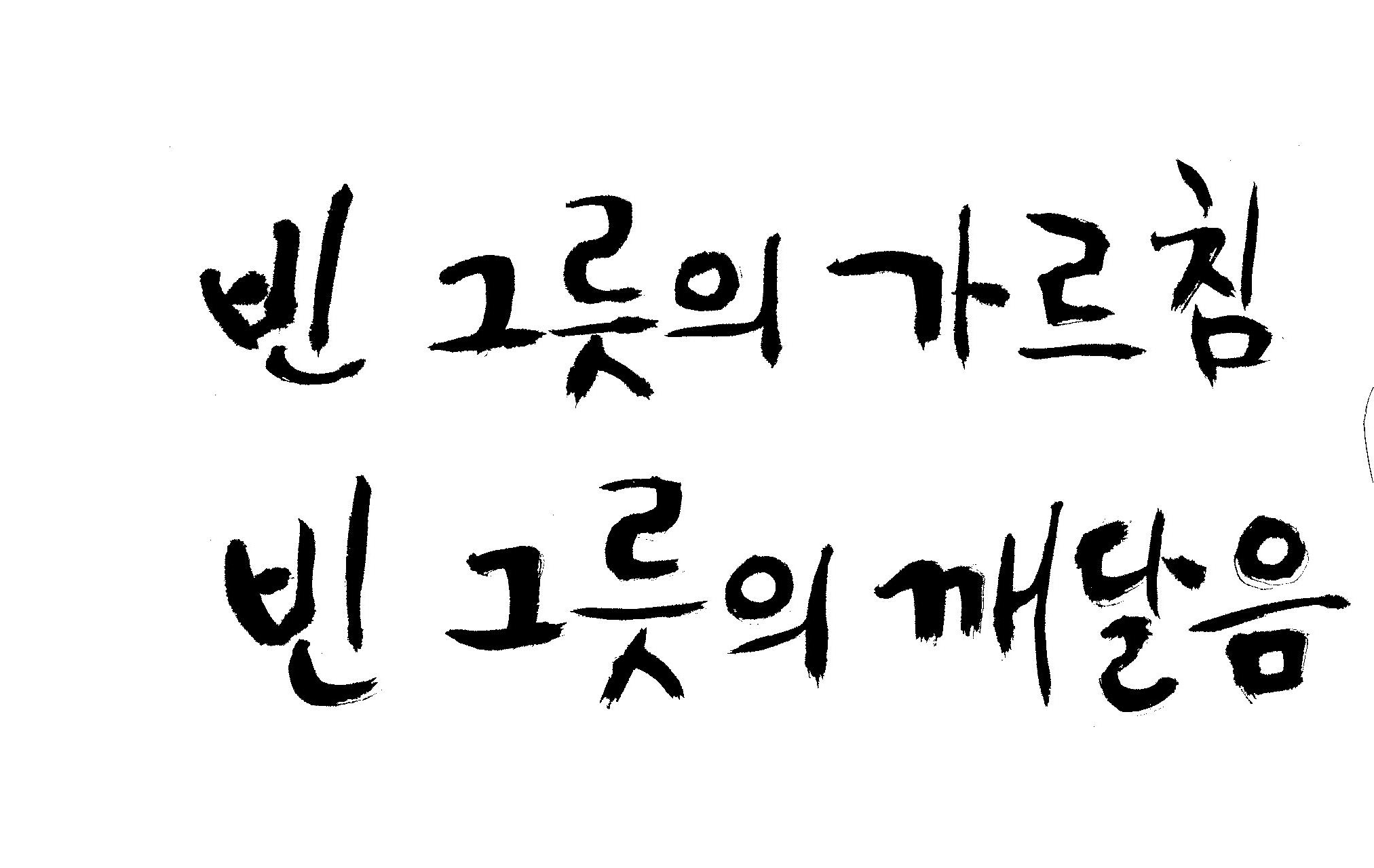 캘리부탁드려요..ㅜㅜ 김철호 일반 0 6721 2009.02.23 13:17 > > 1. 빈그릇의 가르침 > 2. 빈그릇의 깨달음 > > 이 두문장 부탁드려요~~~~~~ > 정말 정말 감사드려요..ㅜㅜ^ >