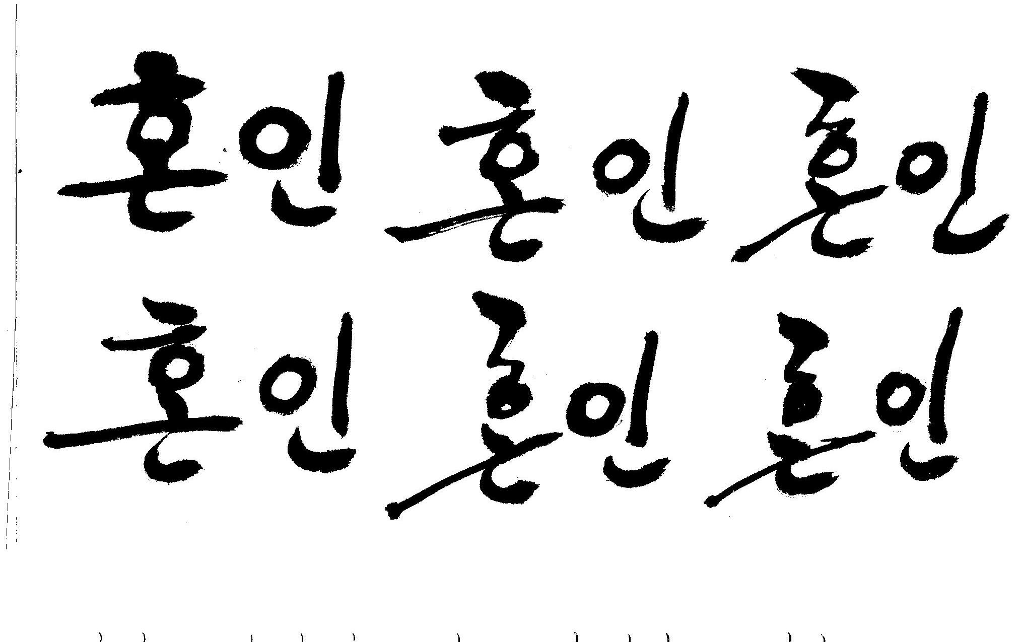 캘리부탁드려욤 .. >_< 김철호 일반 0 9396 2008.12.26 17:33 > > 안녕하세요 > 청첩장을 만들게 되었는데 > 고전적인 느낌으로 그림을 그렸거든요.. > 그런데 앞에 > > '혼인' 이라는 글씨를 한문으로 적어 넣고 싶은데.. > 한글이라두 괜찮아욤!!! ㅠㅠ > 캘리해보려고 시도는 해봤지만 너무 어려워서리..... ㅠㅠ > > [ 婚姻 ] <- (혼인할혼 , 혼인인 ) > > 캘리 부탁드릴수 있을까요?? > 도와주세요~ > 한글로 올립니다. 유용하게 쓰시길..